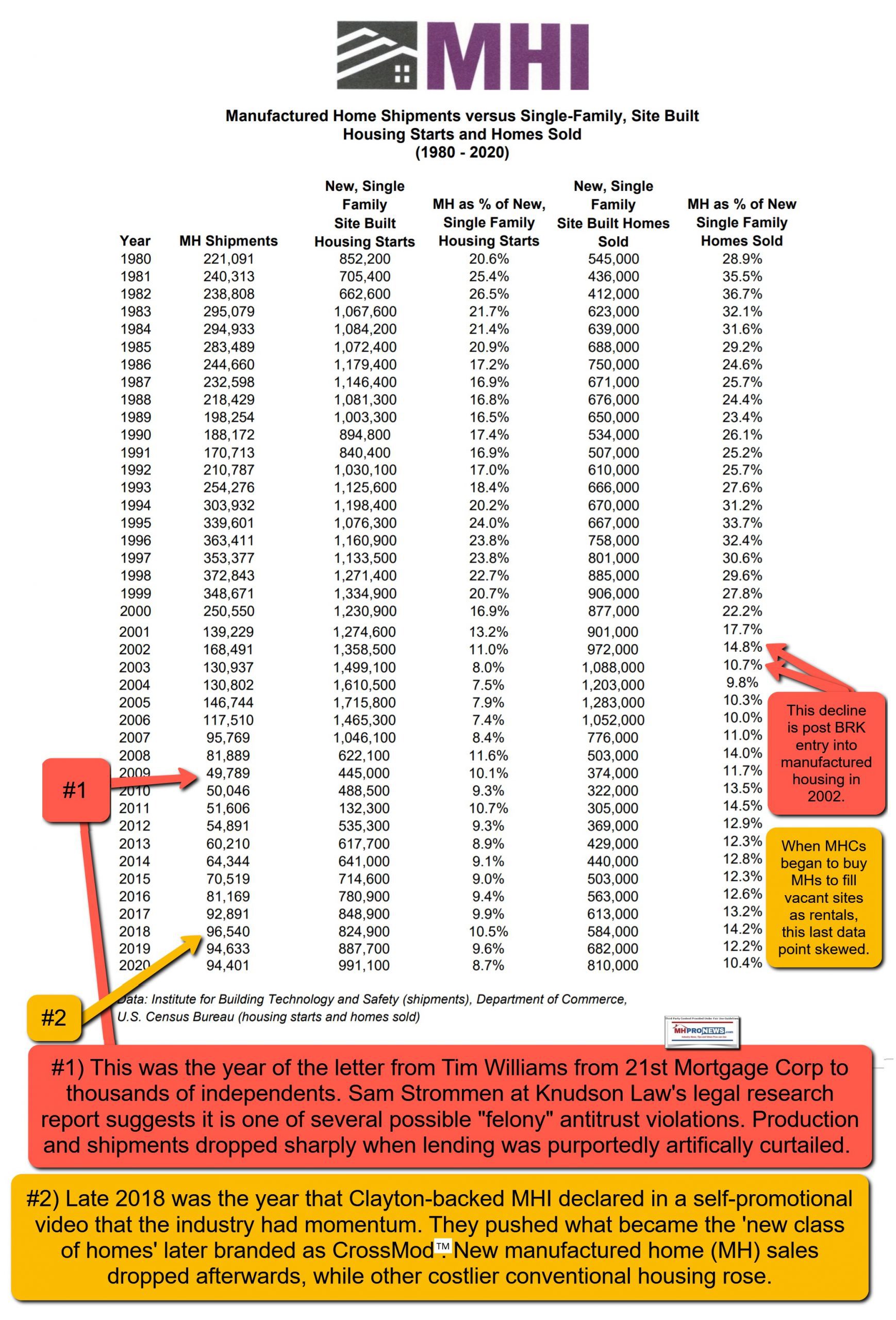 However, in recent months, the Arlington, VA based MHI has for whatever reason apparently stopped providing such information to their email readers. Further, to access certain portions of manufactured home industry data, one must be a member and login.
