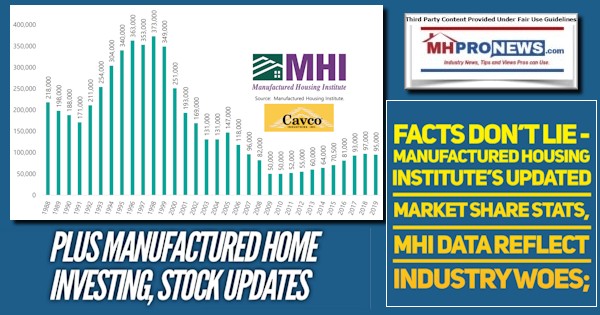 On a day that saw manufactured home connected equities with mixed results, let’s press ahead toward the focus on insights from recently updated data from MHI and what they should tell industry investors, professionals, and others..