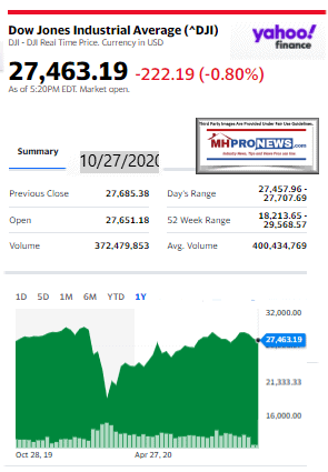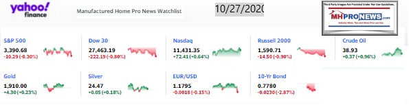 For those who don’t know the history of VP Biden and who want a sense of what Professor Faris thinks will happen on/after election day, see the featured focus. As is our norm, the featured focus follows the quotable quotes, left-right headlines, and 2 of our 3 market summary graphics. The manufactured home equities connected results at the closing bell follows the featured focus and related/recent reports.