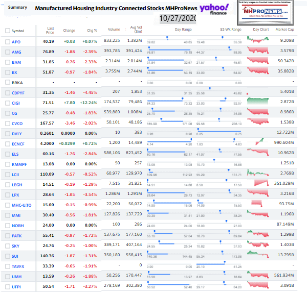 Manufactured Housing Industry Investments Connected Closing Equities Tickers