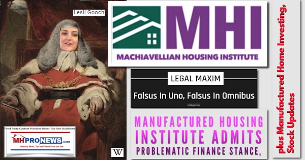 “Falsus in Uno, Falsus in Omnibus;” Manufactured Housing Institute Admits Problematic Finance Stance, plus Manufactured Home Investing, Stock Updates
