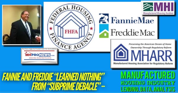 FannieMaeLogoFreddieMacLogoLearnedNothingSubprimeDebacleManufacturedHousingIndustryLendingDataAnalysisMHARRlogoFHFAlogoMHProNewsLogo