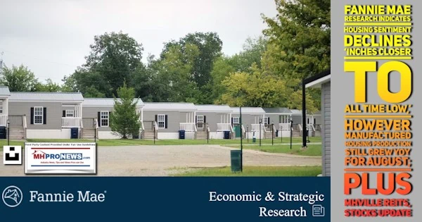 The potential and innate resiliency of the manufactured housing industry vs. the conventional existing home sales and new single family housing markets is demonstrated once more by the data provided on 10.7.2022 by Fannie Mae’s Mae’s Economic and Strategic Research Group (ESR). Per Fannie’s ESR, home purchase sentiment is overall down. Their press release will be followed by additional information with more MHProNews analysis and commentary. The MHVille Real Estate Investment Trusts (REITs) and stock market report for manufactured housing industry connected equities on 10.7.2022 is found in the third segment of this article.