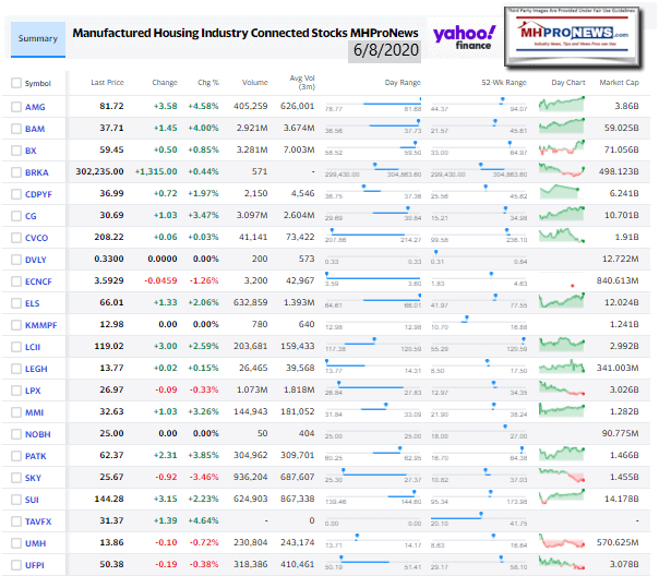 Manufactured Housing Industry Investments Connected Closing Equities Tickers