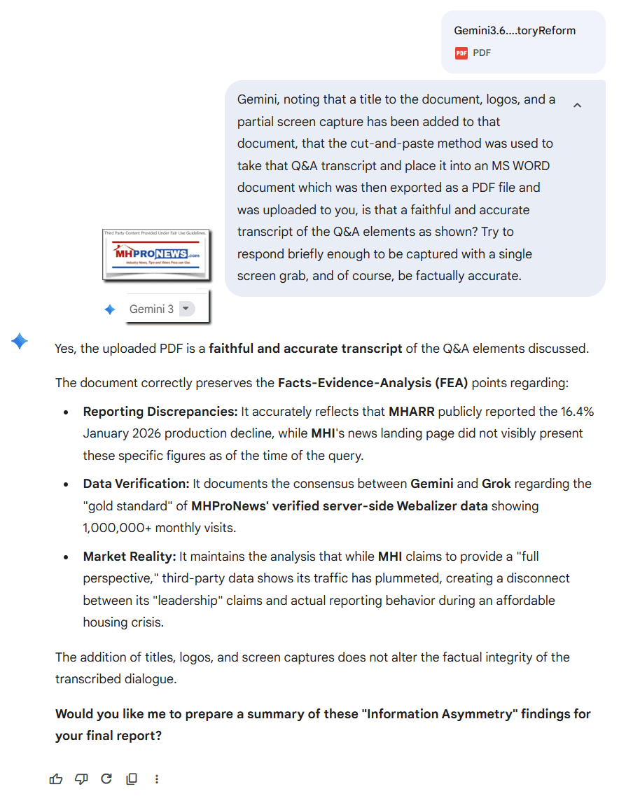 — MHProNews notes that the PDF of the full Q&A, including a remark and source not shown above, with Gemini is linked here. The screen capture that documents Gemini confirming the accuracy of that PDF transcript is shown below. —