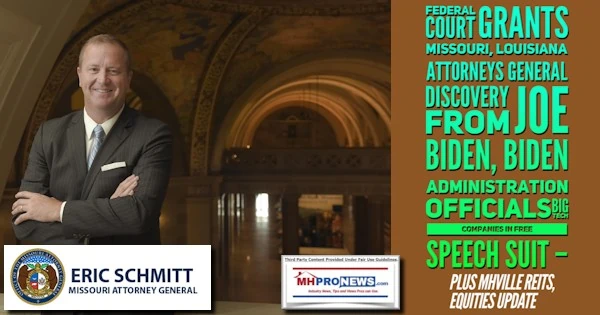 In a media release by Missouri Attorney General (AG) Eric Schmitt, J.D., to MHProNews, their office provided insights and the court ruling in a case that could prove important for those concerned about “Big Government” outsourcing censorship to “Big Tech.” For anyone that has had a social media post throttled, removed, or an account suspended or shut down, this ruling could in time lead to legal relief. MHProNews/MHLivingNews have apparently experienced this problem on ‘Big Tech’ platforms such as YouTube, Twitter and LinkedIn among others on social media/search platforms. Put differently, this is an issue that impacts every American in all professions.
