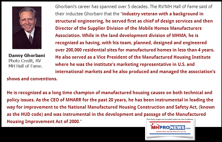 The industry is struggling from what several sources say are forces inside manufactured housing that have thwarted good laws that already exist. More on that is found in the linked reports that follow the byline and notices. Ghorbani and the Manufactured Housing Association for Regulatory Reform has been a consistent leader in that fight for the full and proper implementation of good laws that exist in good measure to the work he and his colleagues have done over the years.