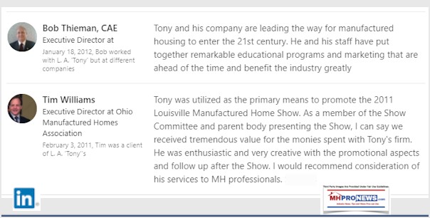 Tony earned a journalism scholarship and earned numerous awards in history and in manufactured housing. For example, he earned the prestigious Lottinville Award in history from the University of Oklahoma, where he studied history and business management. He’s a managing member and co-founder of LifeStyle Factory Homes, LLC, the parent company to MHProNews, and MHLivingNews.com. This article reflects the LLC’s and/or the writer’s position, and may or may not reflect the views of sponsors or supporters.