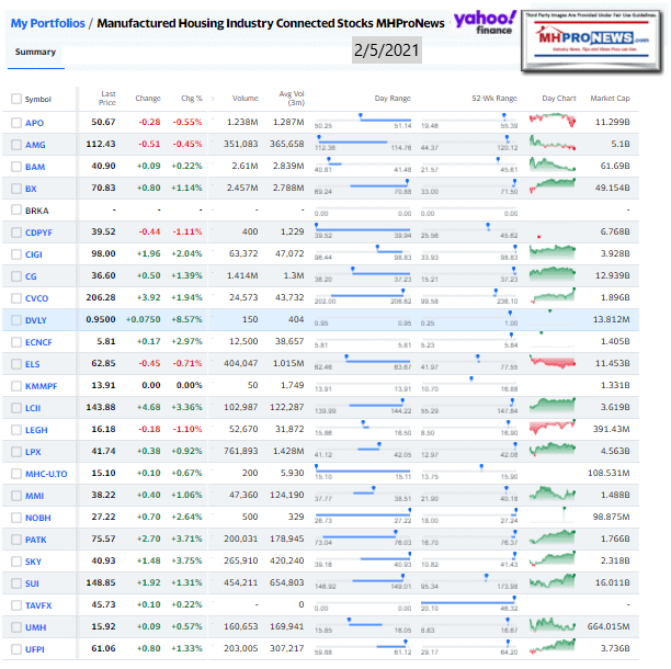 Manufactured Housing Industry Investments Connected Closing Equities Tickers