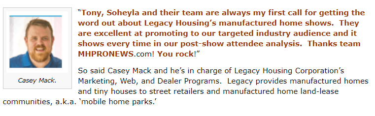 Thanks in good measure to the insights, documents, support and efforts of people who have had enough and are willing to fight back, MHProNews is the go-to resource. That’s only possible because of the input and support of others. As a blatant plug, by tackling the tough topics in this fashion, our sponsors know that they get the most exposure and client-state best results for their money.