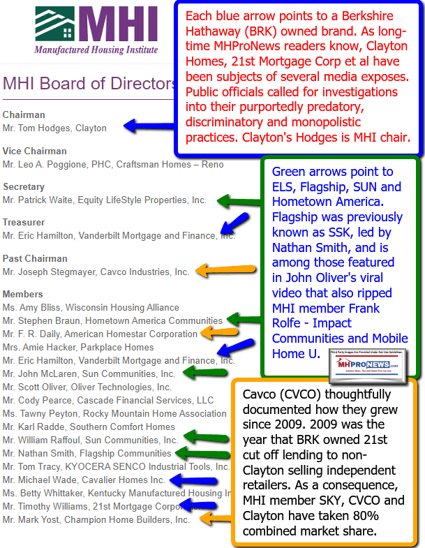 But for now, it is clear that MHI is dominated by a relatively few big brands in manufactured housing. There may be some companies that are members because they have been quietly pushed into membership if they want to do business with the “big boys.” That’s potentially illegal. During my time in MHI, I personally witnessed dialogue to that effect expressed during the Richard “Dick” Jennison era.