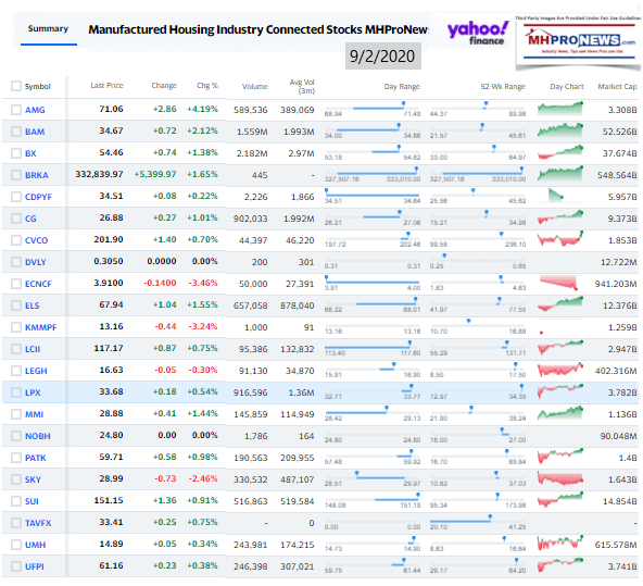 Manufactured Housing Industry Investments Connected Closing Equities Tickers