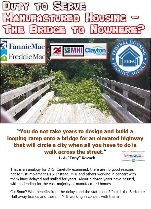 Hold that principle in mind as it will be revisited further below and sheds light on the problematic handling of the Duty To Serve manufactured home lending.