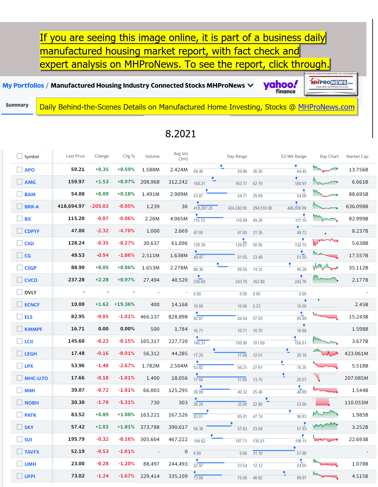 Manufactured Housing Industry Investments Connected Equities Closing Tickers