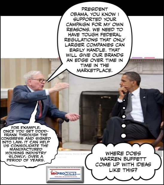 With annual treks to Washington, D.C. to lobby on behalf of Preserving Access, routine emailed and in-person updates from Berkshire’s maid servant – MHI – plus the same coming from other state associations, the illusion was nearly complete. But Williams’ dark prediction of lending doom – which is the same as doom for new home sales – was proven obviously wrong. As was noted, Preserving Access never passed. Yet manufactured housing still exists. In fact, the industry is selling more manufactured homes now than then. Was Williams exaggerating for effect? Lying to get the illusion started? Examine the evidence and history. Decide for yourself. “We Provide, You Decide.”©.