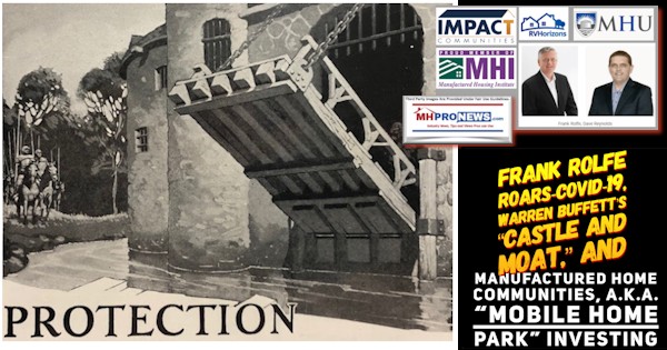 With that brief backdrop, MHProNews pivots to a recent forward from a manufactured home industry reader. That professional reader knows that this trade publication has monitored and reported on Warren Buffett’s “Castle and Moat” metaphor, and how it has specifically played on in the manufactured housing industry.