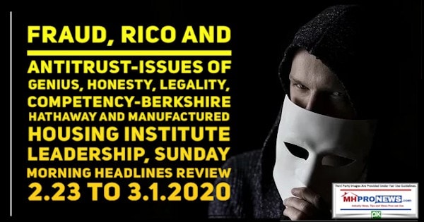 While the scam Madoff was convicted of was different in certain ways, the purported similarities exist too. For instance, Madoff was for years held in a similarly high esteem as Buffett is. But just as Madoff or others who once rode high in saddle and then fell from grace, so too – if they live long enough – Buffett, Munger and others in their circle may be in time be found out to be guilty of RICO, antitrust and other violations. Because there are a variety of sources in and outside of manufactured housing that say that investigations are underway. Perhaps more can and should be forthcoming.