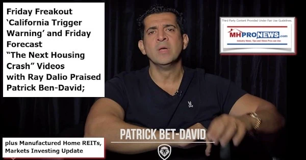 “Patrick is one of the most exciting thinkers I’ve had the chance to converse with,” said billionaire investor Ray Dalio about Patrick Bet-David, in a quote from his website. “I believe in and follow Patrick Bet-David. He has the drive and the fire to make a difference,” said Steve Wozniak, Co-Founder of Apple per Valuetainment. Bet-David is a self-described Iranian-American. He says he has lived in several parts of the U.S., including California, Texas, and Florida, but names other places in the first video below. For those who know Iranian-Americans, they are often highly motivated, informed, well-educated, driven and passionate people. In the pages of MHProNews, some of the Iranian-Americans featured have included MHARR’s founding president Danny Ghorbani, the former Department of Justice antitrust assistant attorney general Makhan Delrahim, and of course this publication’s co-founder, Soheyla Kovach. Bet-Davis in these two videos posted below provides his unique take on two hot topics. “California, This Video May Trigger You – Watch At Your Own Risk” (8.1.2022) and “Another 2008 Housing Crash – Or Worse? Real Estate Bubble Explained.” Among those Bet-David on – and ‘takes apart’ – with his pages of economic, mortgage and housing data is Dave Ramsey’s view that housing won’t take much of a hit. “Patrick’s” forecast is also posted below. These two recent videos have had over 2 million views on YouTube alone.