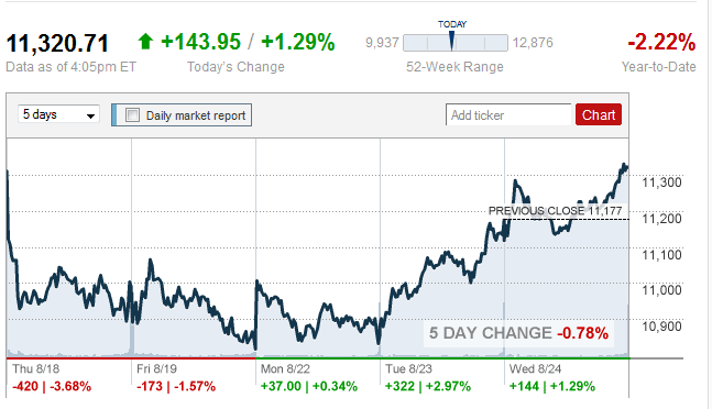 CNNMoney reports that while there are no guarantees, some traders in the markets responded to hopes of a possible QE3 announcement by the Fed this Friday. The Manufactured Housing Composite index rose 3.34% to close at 770.5. AMG 81.87 +1.44 (1.77%), but retreated in after hours trading. Clayton Homes, Vanderbilt Mortgage & Finance and other MH builders, lending and supplier parent Berkshire Hathaway closed at 106350.00 +2500.00 (2.41%). Cavco Industries 31.31 +0.68 (2.22%). Champion Enterprises, Deer Valley, Liberty Homes and Palm Harbor all remained unchanged. Drew 18.91 +0.22 (+1.18%). ELS 64.97 +1.42 (+2.23%) Nobility Homes 7.39 +0.38 (+5.42%) Patrick 1.9399 -0.0101 (-0.52%). Skyline 10.02 +0.56 (+5.92%) Sun Communities 36.73 +1.07 (+3.00%) Third Avenue Value Fund (TAVFX) 45.06 (8.23) 45.06 +1.13 (+2.57%). UMH 9.56 +0.08 (0.84%). UFPI 28.25 +0.77 (2.80%), but retreated in after hours trading.