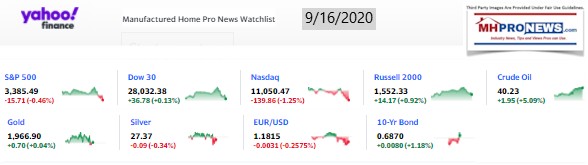 That featured focus will follow two of our three market snapshots, some quotable quotes, and the left-right headlines. The final market snapshot of manufactured home connected equities will be found after our featured focus and related reports.