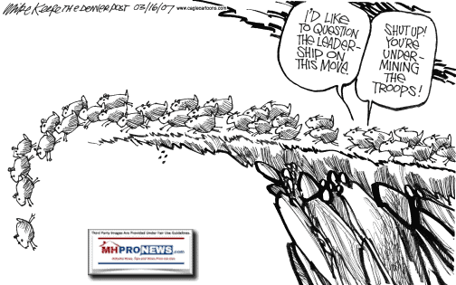 Do they count on manufactured housing professionals to be what Buffett called “lemmings?” Mere followers of Berkshire- and their allies-backed MHI that lead independents off the proverbial cliff?