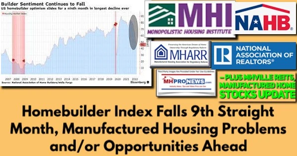 Homebuilder Index Falls 9th Straight Month, Manufactured Housing Problems and/or Opportunities Ahead – plus MHVille REITs, Stocks Update