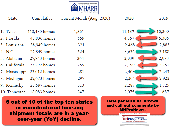 While far more costly conventional housing is roaring back, manufactured housing – while recovering from the shutdowns and various limitations that have been caused by the COVID19 economic turmoil starting earlier this year – has been muted.