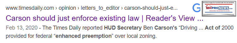 When the problem is understood, that begs the question, why isn’t the solution being deployed? That solution on a practical level is manufactured housing placements made possible by the enhanced preemption provision of the MHIA 2000. So why isn’t MHI and their reportedly rewarded surrogate-bloggers and trade publishing pushing that obvious point?