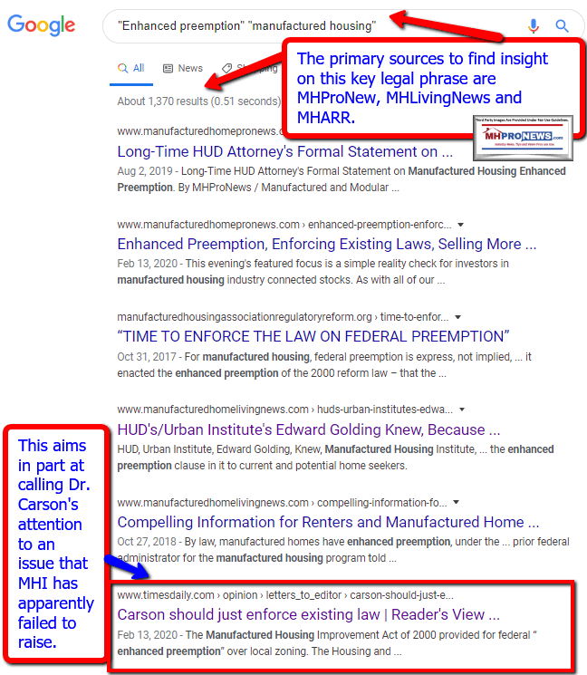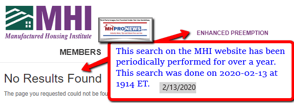 Under an all categories searches, MHARR, MHProNews and MHLivingNews dominate. Which certainly creates a reasonable presumption that MHI and their ‘big boy’ backers are essentially ‘hiding’ in this useful term. That begs the question, why?