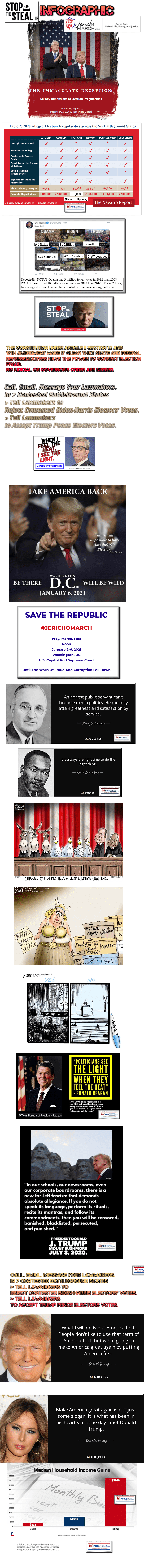 Even those who voted against President Donald J. Trump and Vice President Mike Pence should care about this election being fair and not rigged. Certainly, the options for election fraud that often revolve around mail in ballots, the dead voting, voters voting twice, ineligible people voting and so on must be permanently resolved. But that is no excuse not to correct the abuse of the 2020 election. Note that there are reports that several GOP senators are poised to do this, and there are even more Congressional representatives who are publicly committed. But more is obviously better. Indeed, all should be on board with this.