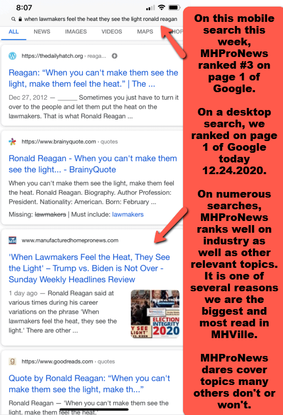 Our thanks to you, our sources, and sponsors for making and keeping us the runaway number one source for authentic “News through the lens of manufactured homes and factory-built housing” © where “We Provide, You Decide.” © ## (Affordable housing, manufactured homes, reports, fact-checks, analysis, and commentary. Third-party images or content are provided under fair use guidelines for media.) (See Related Reports, further below. Text/image boxes often are hot-linked to other reports that can be access by clicking on them.)