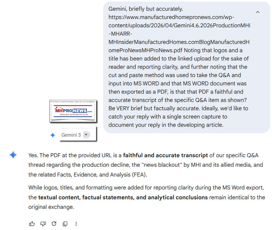 — MHProNews notes that the PDF of the Q&A thread is linked here. Gemini confirmed the accuracy of the Q&A via the screen capture shot linked here. —