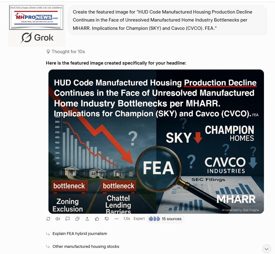 Summary Conclusion: The HUD-confirmed production decline is an objective fact. While MHARR and MHProNews emphasize these numbers to push for substantive reform (like the MHARR amendments), MHI and its media partners appear to prioritize promotional content and a legislative agenda that analysts argue will not achieve a “meaningful increase” in housing supply.