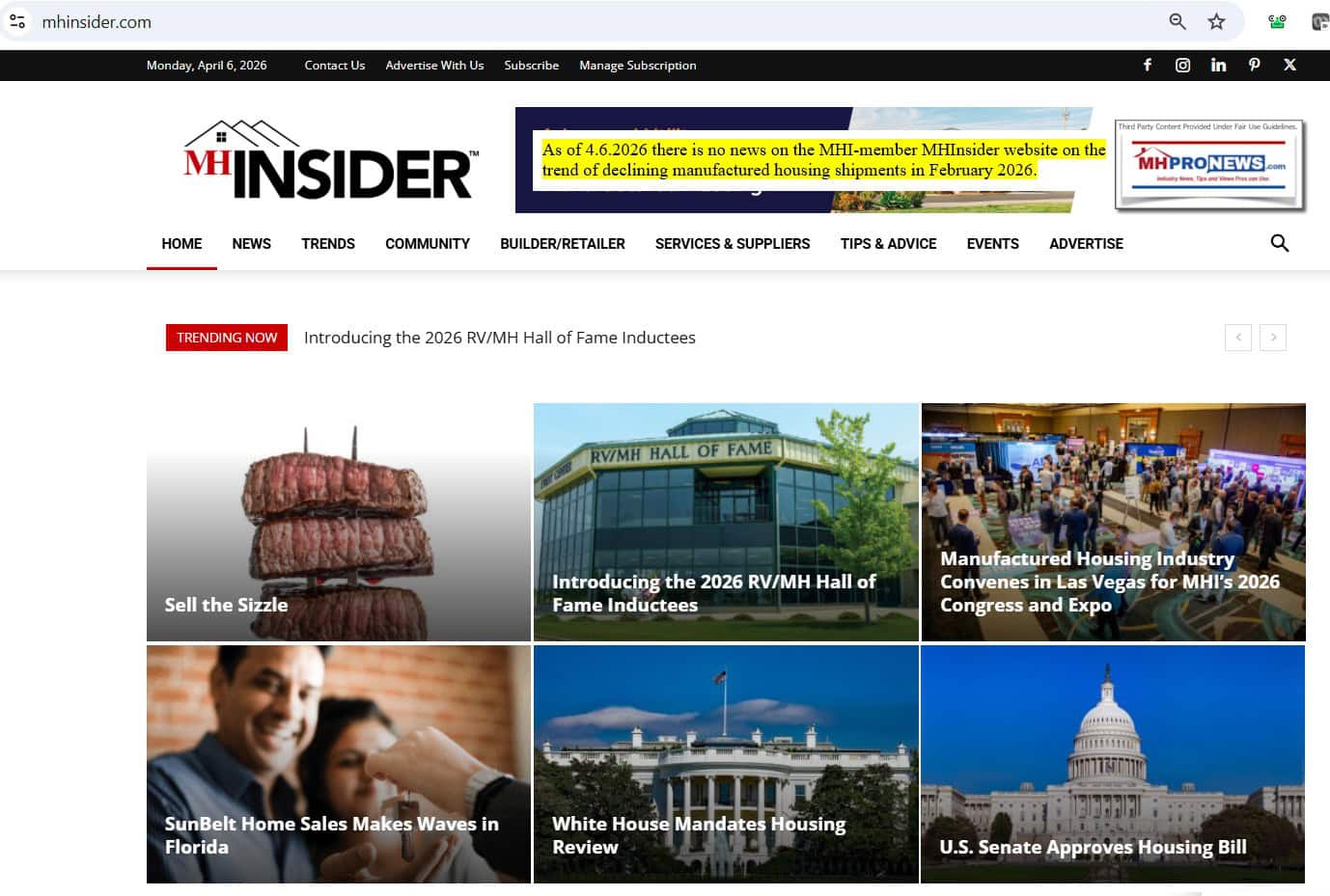 MHI & MHInsider: Recent coverage (March/April 2026) is heavily focused on the 2026 Congress and Expo in Las Vegas, showcasing “innovations,” awards, and networking. There is a lack of prominent reporting on the month-over-month production declines documented by HUD.