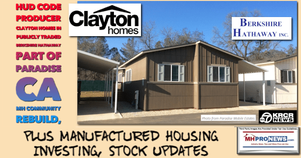 HUD Code Producer Clayton Homes in Publicly Traded Berkshire Hathaway Part of Paradise CA Community Rebuild, plus Manufactured Housing Investing, Stock Updates