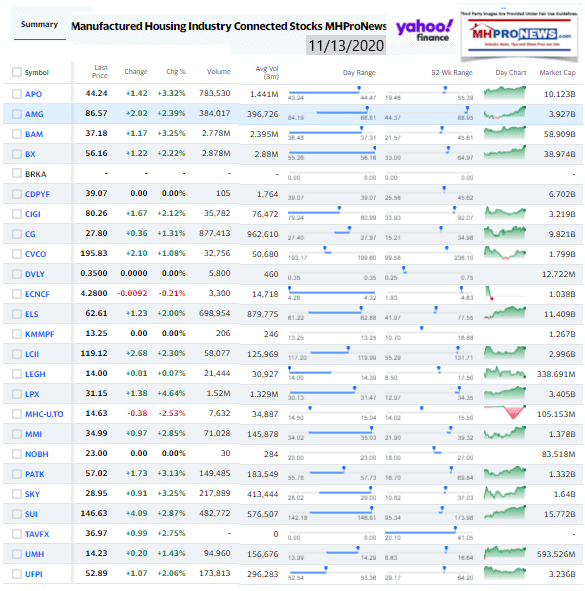 Manufactured Housing Industry Investments Connected Closing Equities Tickers