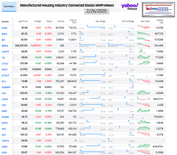 Manufactured Housing Industry Investments Connected Closing Equities Tickers