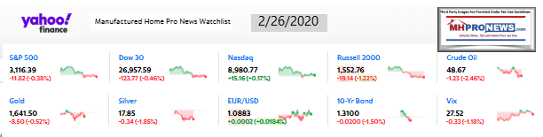 We begin with headlines left-of-center CNN followed by right-of-center Fox Business. We share closing tickers and other related data courtesy of Yahoo Finance, and more. 5 to 10 minutes reading this MHProNews market report every business night could save you 30 minutes to an hour of similar reading or fact-gathering elsewhere.