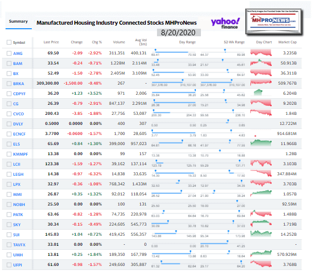 Manufactured Housing Industry Investments Connected Closing Equities Tickers