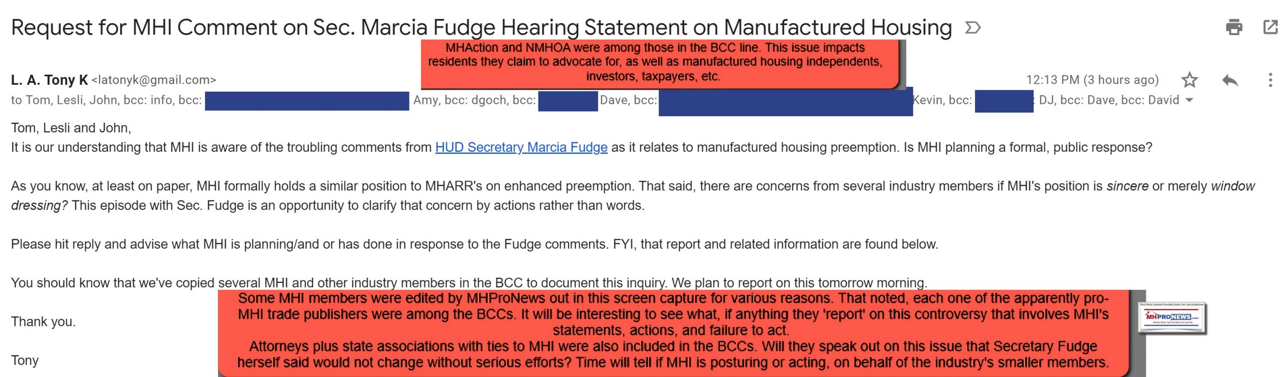 Additionally, MHProNews asked MHI to respond to this issue. Several MHI members and affiliates were copied to document the inquiry.
