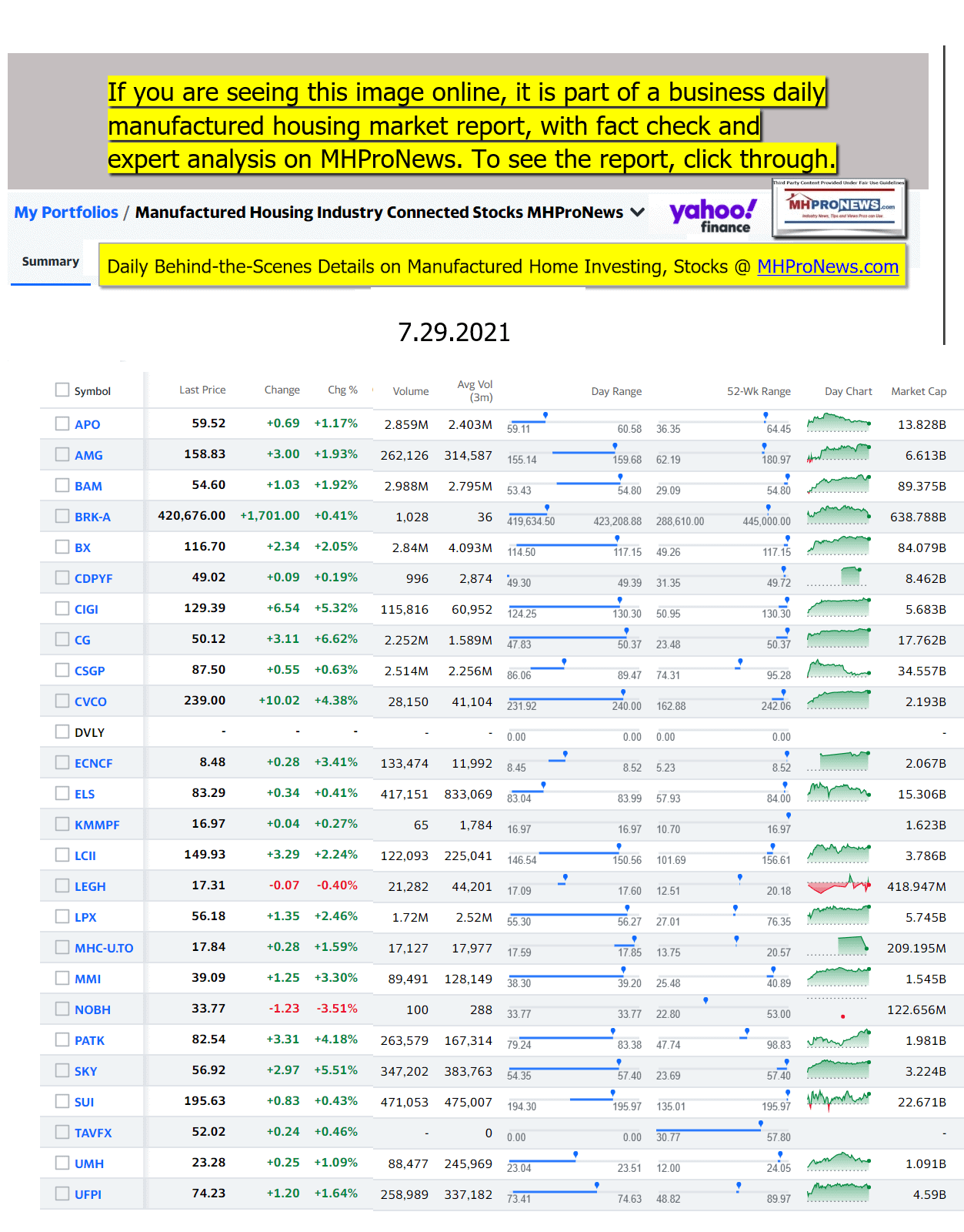 Manufactured Housing Industry Investments Connected Equities Closing Tickers
