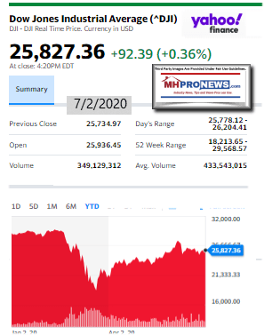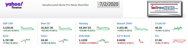 That follows 2 of our 3 market snapshot graphics at the closing bell tonight. The manufactured housing connected stocks at the close today are found near the end of this report, beyond the featured focus and related reports.