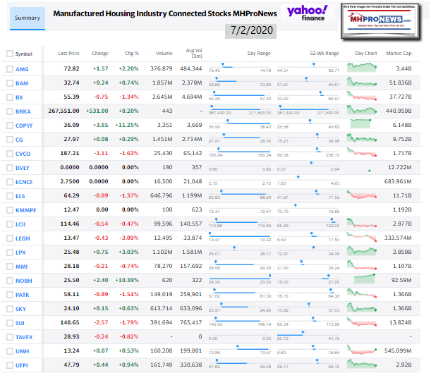 Manufactured Housing Industry Investments Connected Closing Equities Tickers