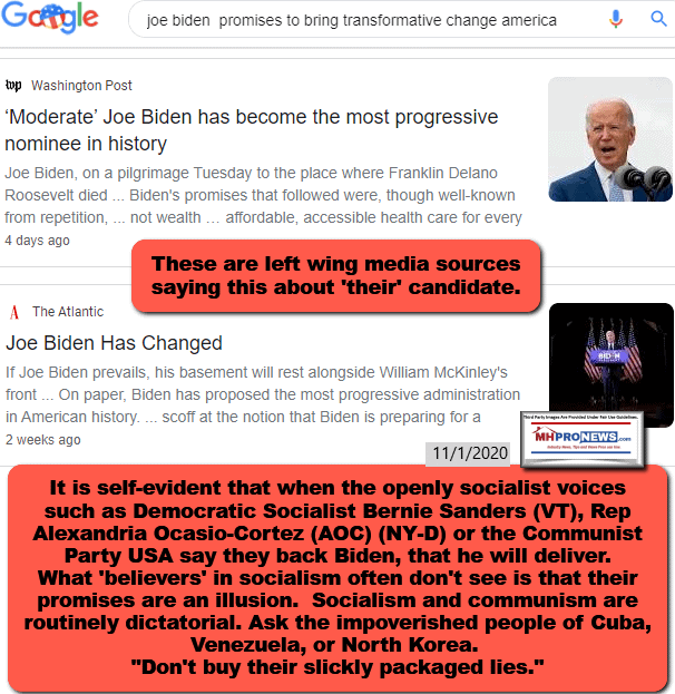 It is self-evident that when the openly socialist voices such as Democratic Socialist Bernie Sanders (VT), Rep Alexandria Ocasio-Cortez (AOC) (NY-D) or the Communist Party USA say they back Biden, that he will deliver.