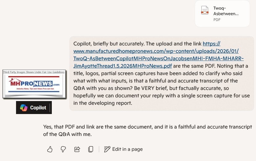 3) MHProNews notes that there were two Q&As with Copilot, because it missed seeing/reading something that it essentially asked for in its original response. The full thread of the PDF with MHProNews will be provided further below.