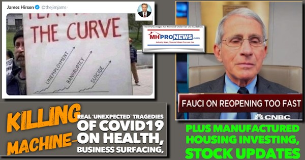MHProNews said early on that this was an apparent money grab, and a way of hobbling smaller competitors, citing sources as well as evidence. Given increasing evidence of ‘deep state’ efforts in Washington, why would objective thinkers be surprised if the Wuhan Virus has been just another effort – in a dark sense, more successful thus far – at undermining the Trump Administration? This isn’t new, it is only new to those who source their information only from anti-Trump sources among the left-right media bias sources. That report linked below was April 16, and much more has emerged since then.