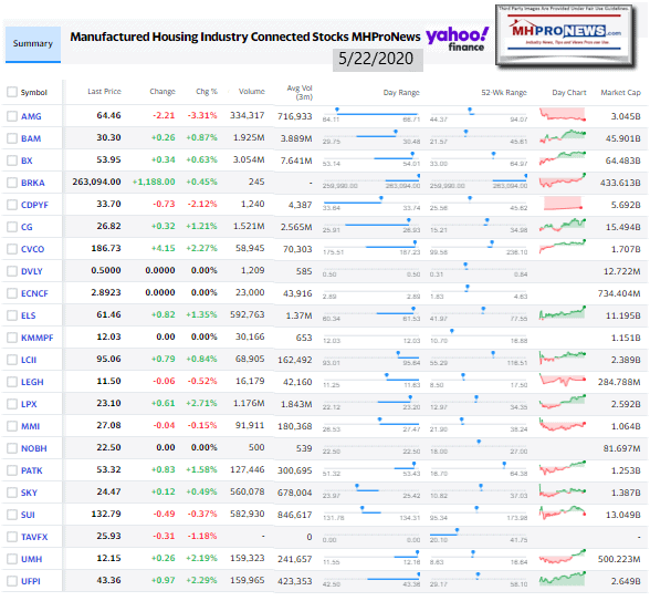 Manufactured Housing Industry Investments Connected Closing Equities Tickers