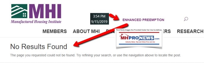 - The national and state trade groups ought to routinely and consistently push for full enforcement of the Manufactured Housing Improvement Act (MHIA) of 2000, and by its proper name, push for “enhanced preemption.” The fact that MHI doesn’t have those words on their own website in recent years when years before they did is an eye opening disgrace.