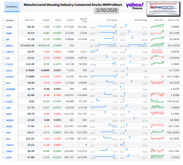 Manufactured Housing Industry Investments Connected Closing Equities Tickers