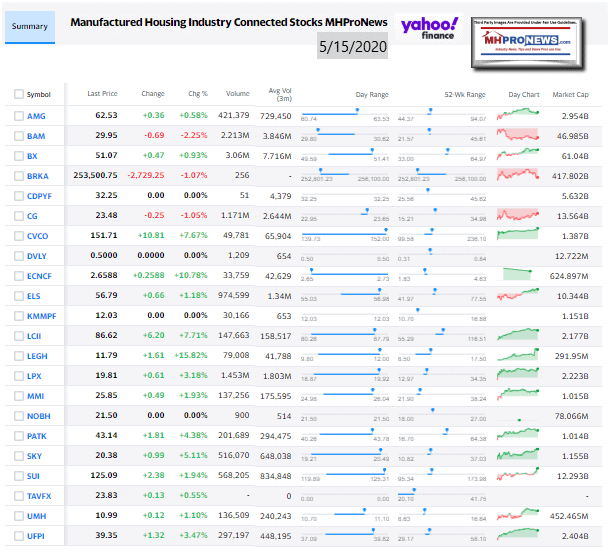 Manufactured Housing Industry Investments Connected Closing Equities Tickers